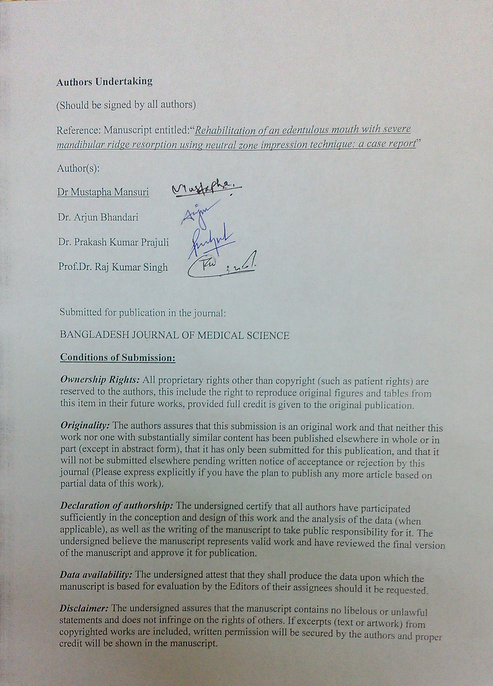 Authors who publish in the Bangladesh Journal of Medical Science agree to the following terms that: