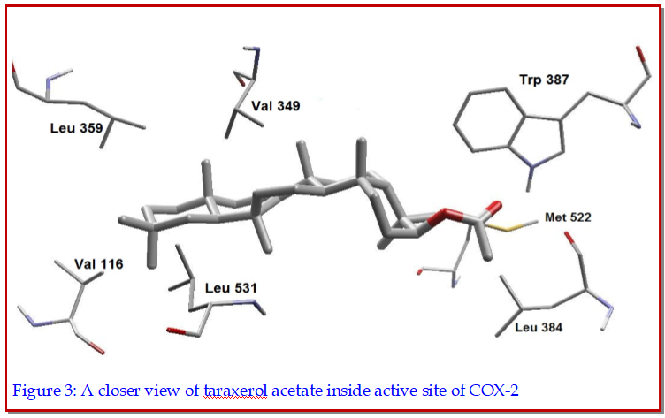 Molecular docking of taraxerol acetate as a new COX inhibitor