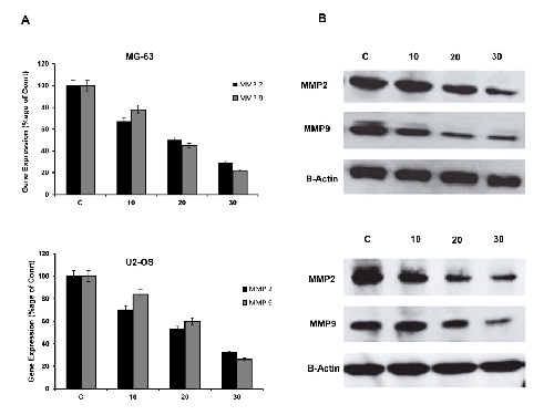 Human osteosarcoma cells were treated with withaferin A and the antiproliferative activity was evaluated by the 3-(4, 5 dimethyl-thiazol-2-yl)-2, 5-diphenyltetrazolium bromide (MTT) assays. Real-time RT-PCR and western blot were used to investigate whether the down-regulation of Notch-1 contributes to withaferin A-induced inhibition of proliferation in osteosar-coma cells. The results showed that withaferin A caused marked inhibition of osteosarcoma cell growth and G2?M phase cell cycle arrest. This was associated with concomitant attenuation of Notch-1 and down-regulation of its downstream genes, such as matrix metalloproteinases. These results suggest that antitumor activity of withaferin A is mediated through a novel mechanism involving inactivation of the Notch-1 signalling pathway. Our data provide the first evidence that the down regulation of Notch-1 by withaferin A may be an effective approach for the treatment of osteosarcoma.