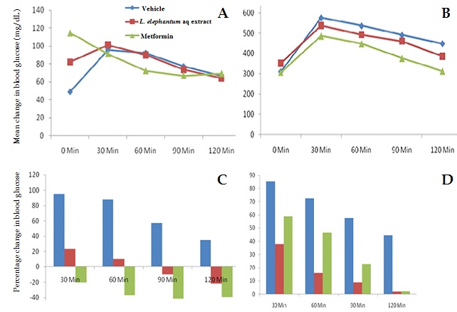 The hypoglycemic activity of the aqueous leaf extract of Limonia elephantum was evaluated. The extract was administered orally 1,000 mg/kg to normal and alloxan-induced (55 mg/kg body weight, i.v) diabetic rats. The hypoglycemic effect of the extract was statistically significant with an oral dose of 1,000 mg/kg and was comparable to that of the effect produced by standard antidiabetic agent, metformin 1.5 mg/kg. The extract increased the glucose tolerance using oral glucose tolerance test.