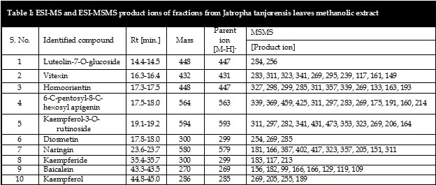 Structural characterizations of lead anticancer compounds from the methanolic extract of Jatropha tanjorensis