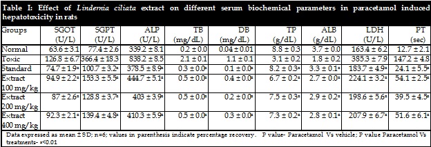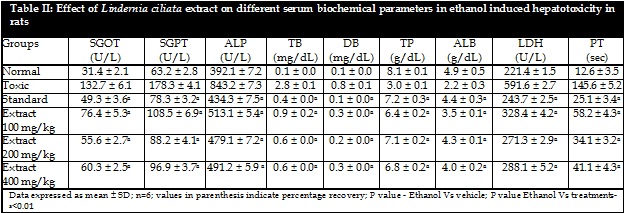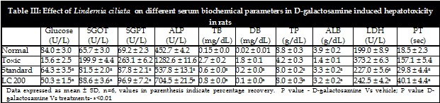 Hepatoprotective studies on methanolic extract of whole plant of Lindernia ciliata