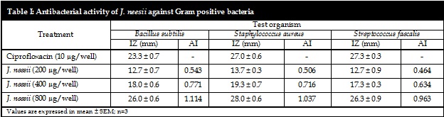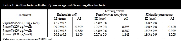 Antimicrobial activity of ethanolic extracts of Justicia neesii