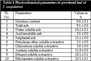 GC-MS analysis, preliminary phytochemical screening, physicochemical analysis and anti-diabetic activity of ethanol extract of Jasminum cuspidatum leaves