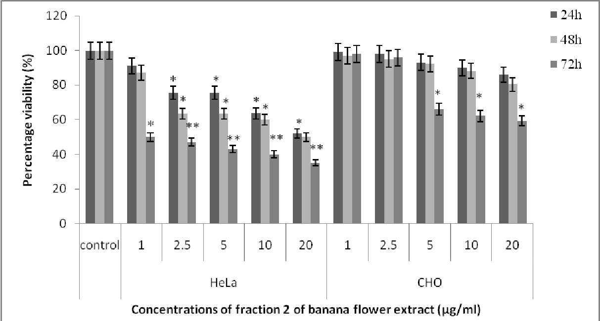 Anti-cancer, antiproliferative, banana flower, bioactive fraction, cytotoxic, HeLa cellsAbstract
