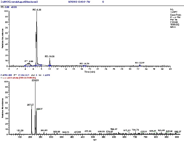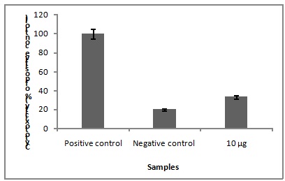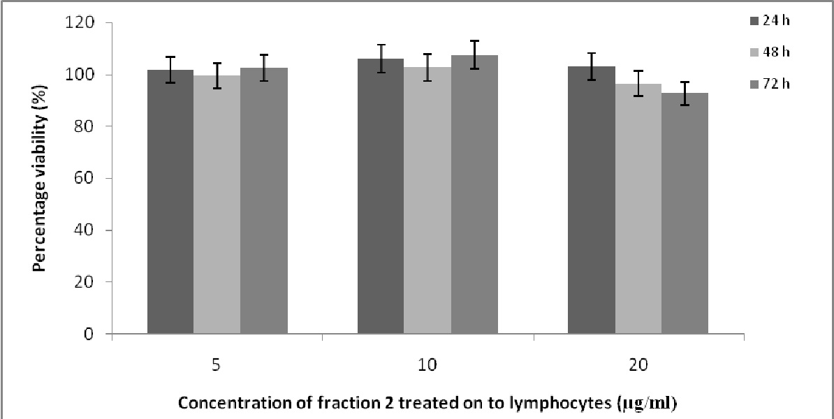 Banana (Musa paradisiaca) flower is rich in phytochemicals (vitamins, flavonoids, proteins) and has antioxidant properties. The anti-cancer activity of banana flower extract has been evaluated on the cervical cancer cell line HeLa. The antiproliferative effects were evaluated by MTT assay. The extract was further purified by TLC and characterized by LC-MS method. The ethanol extract had significant cytotoxicity to HeLa cells with an IC50 of 20 µg/mL. By thin layer chromatography we could isolate three fractions out of which fraction 2 had exhibited maximum anti-proliferative effects with an IC50 value of <10 µg/mL. By LC-MS analysis, bioactive fraction was found to have an m/z value of 224.2 indicating it as a novel one.