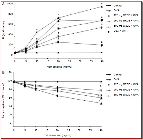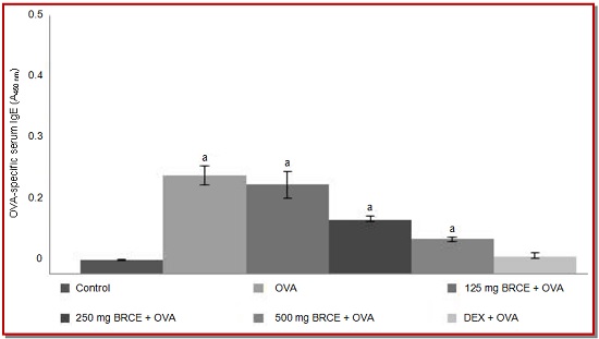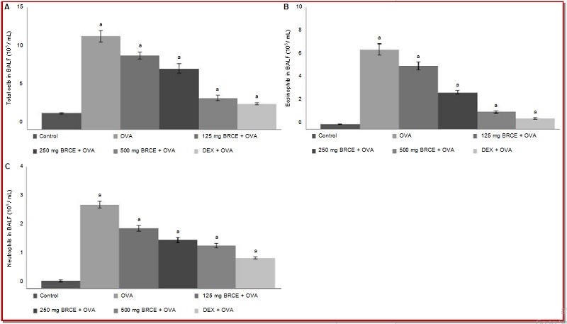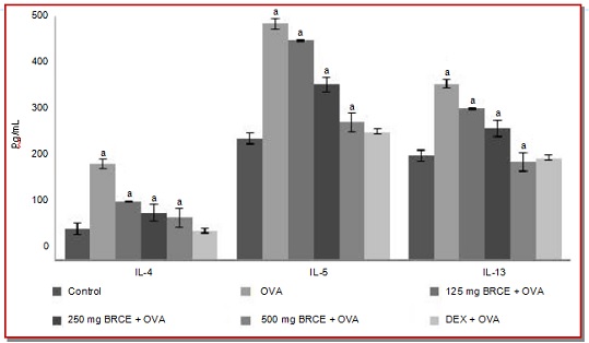 Asthma is one of the most common chronic inflammatory diseases characterized by airway infiltration of inflammatory cells inducing hyper-responsiveness. Due to the inefficacy of currently used drugs to definitely cure asthma, there is an insistent need for identification of novel therapies. In the present research, efficiency of Brassica rapa extract in asthma-induced mouse model was investigated. Asthma was induced in mice by ovalbumin induction. The extract (125-500 mg/kg) effectively reduced ovalbumin-specific IgE in serum and levels of interleukins (IL): IL-4, IL-5 and IL-13 in bronchoalveolar lavage fluid (BALF). B. rapa extract inhibited inflammatory cell infiltration in BALF and also improved lung compliance and airway resistance. The extract caused marked reduction in the expression levels of phosphorylated ERK, p38, I?B-? and NF-?B, however dose-dependent activation of JNK was observed. The extract of B. rapa thus was effective in suppressing ovalbumin-induced asthma.