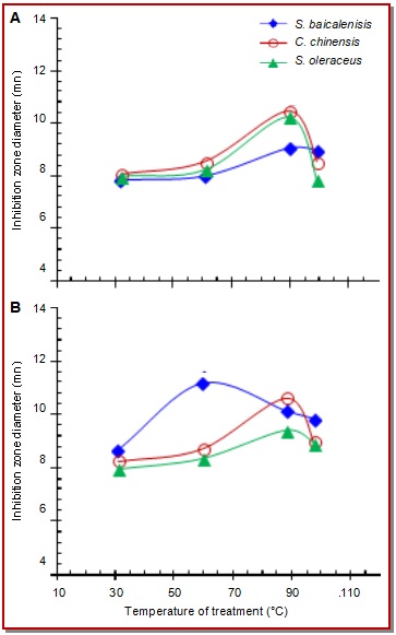 The present study was carried out to identify antibacterial and antioxidant characteristics of traditional aqueous extracts derived from three traditional Chinese medicinal plants (Scutellaria baicalensis, Coptis chinensis and Sonchus oleraceus). It was indicated that the S. oleraceus showed the highest antibacterial efficacy, especially against Staphylococcus aureus. The minimum inhibitory concentration (MIC) of the S. oleraceus was 5.0 mg/mL what was in correlation with the high total phenolic and flavonoid contents and CUPRAC value, and MIC of both S. baicalensis and C. chinensis was 7.5 mg/mL. The rational pH of the working S. oleraceus was acidic, while the other two preferred to neutral or alkaline environment. The reasonable preservation temperature of S. baicalensis should not beyond 60°C, while the other two below 90°C. Meanwhile, S. baicalensis had significant antioxidant activity with the highest CUPRAC and ·OH scavenging activity. These results had provided useful information on further drug discovery.