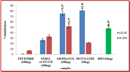 The article discusses anti-oxidant oral glucose tolerance and anti-hyperglycemic potentials of Syzygium calophyllifolium. Extracts from successive solvent extraction were tested for the total phenolic, tannin, flavonoid content and free radical scavenging property using DPPH, ABTS+, phosphomolyb-denum, FRAP, superoxide and metal chelating assays. Ethyl acetate extract of bark responded well against DPPH (IC50 4.13), ABTS+ (36832.29 µM TE/ g extract),phosphomolybdenum (100.4 g AAE/100g extract), superoxide and metal ion radicals. The methanol extract of bark was also found as an effective radical scavenger. The leaf methanol extract also showed significant anti-oxidant ability. The bark methanol extract could potentially reduce the blood glucose level in glucose loaded and diabetic rats. The immense anti-oxidant potential of S. calophyllifolium leaf and bark extracts could be taken as a good source of natural anti-oxidant supplement in food to defend oxidative stress related disorders like diabetes.