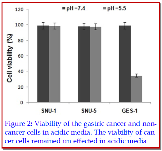 The present study investigates the effect of rubriflordilactone A on the viability and its underlying mechanism in gastric cancer cell lines (SNU-1 and SNU-5) and normal gastric epithelial cell line (GES?1). Incubation of the gastric cancer and non cancer cell lines in acidic media led to reduction in the viability of the non cancer cells without any effect on cancer cells. Apoptosis in SNU-1 and SNU-5 cells was induced on exposure to rubriflordilactone A after 48 hours compared to the control cells (p<0.01). The percentage of apoptosis in SNU-1 and SNU-5 cells on exposure to rubriflordilactone A was 79.3 ± 4.7 and 74.0 ± 5.1, respectively after 48 hours. Exposure of SNU-1 and SNU-5 cancer cell lines to rubriflordilactone A at a concentration of 10 ?M in media with acidic pH decreased phosphorylation of ERK ½. The similar reduction was caused by ERK 1/2 phosphorylation inhibition, PD98059. Thus rubriflordilactone A reduces viability of gastric cancer cell lines by inducing apoptosis through the reduction of ERK 1/2 phosphorylation.