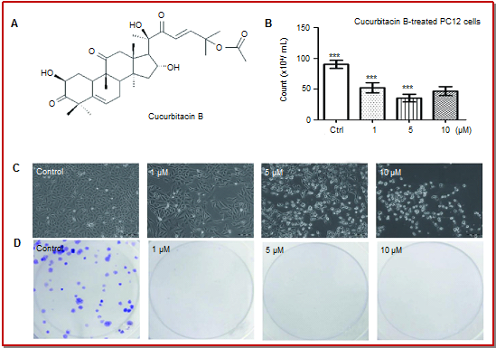 - Figure 1: Effect of cucurbitacin B on the morphology, cell number and colony formation in PC12 cell line.