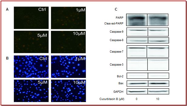 - Figure 5: Effect of cucurbitacin B on JC-1 staining, Hoechst 33342 staining and the expression of apoptotic related proteins.