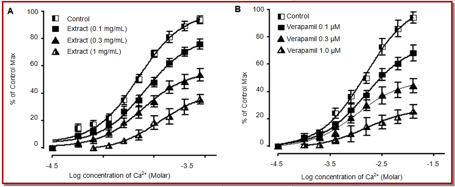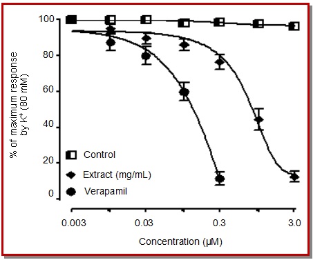 Jatropha gossypifolia is used in folkloric system to manage emesis and gastrointestinal motility disorders such as constipation and diarrhea. The present study was undertaken to provide pharmacological evidences for these folkloric uses by in vivo and in vitro experimental setting. Ethanolic extract of J. gossypifolia showed the significant antiemetic potential (p<0.05) against different emetogenic stimuli, when compared with chlorpromazine. The extract (0.01-1.0 mg/mL) on application to isolated rabbit jejunum preparation exerted spasmogenic effect, followed by the spasmolytic effect (3-10 mg/mL). In the presence of atropine, spasmogenic effect was blocked while spasmolytic effect was emerged, suggesting the involvement of muscarinic receptor activation. J. gossypifolia caused relaxation of high K+ (80 mM)-induced contraction and shifted the Ca2+ concentration-response curve to the right in a manner similar to verapamil, thus conforming its Ca2+-channel blocking activity. These findings provide pharmacological validation for the presence of antiemetic and gut modulator (spasmogenic and spasmolytic) activates, validating its folkloric uses.