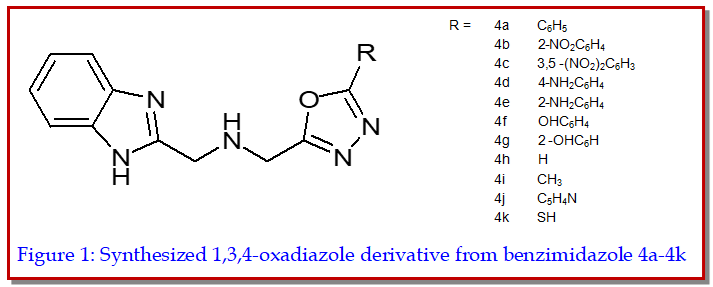 In the present study, a series of 1,3,4-oxadiazole derivatives (4a-4k) derived from benzimidazole were docked onto factor Xa (PDB: 1NFY) protein using SYBYLX 2.1. and also evaluated for in vitro clot lysis for thrombolytic activity. The synthesized molecules were also screened for in silico ADME studies. The molecular docking studies highlighted that the molecules showed high affinity towards 1NFY with higher docking score and the in silico ADME results were promising and indicated that the molecules holds great potential as a drug candidate. The thrombolytic evaluation was performed for decrease in solid clot weight by the clot lysis study at a concentration of 6.25, 12.5 and 25 µM strengths, respectively. The results of in vitro clot lysis for thrombolytic evaluation revealed that the tested compounds 4a-4k exhibited significant clot lysis with respect to negative control phosphate buffered saline and in comparison to the reference drug streptokinase (30,000 IU). Among all the tested compounds, compound 4j, 4d and 4g exhibited potent thrombolytic activity with EC50 value of 16.2, 18.1 and 23.7 µM, respectively. The thrombolytic efficacy investigation highlights that the synthesized compound 4j could be considered for further clinical studies to ascertain its possible hit as thrombolytic agents.