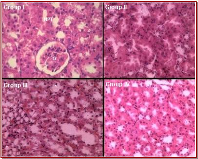 - Figure 4: Photomicrographs (45X) of kidney?s section of rats showing histopathological changes