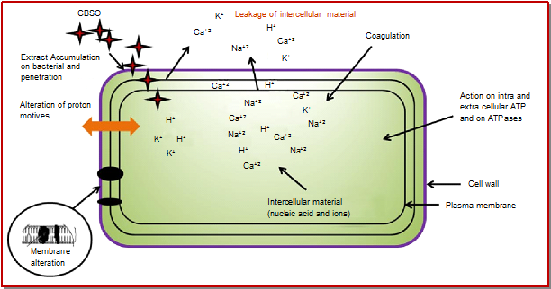 - Figure 4: Proposed mechanism of the antibacterial mode of action of Caesalpinia bonducella seed oil against food-borne pathogenic bacteria