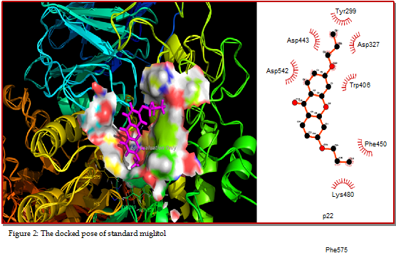Twenty eight xanthone derivatives were designed and docked into the N-terminal catalytic domain of maltase-glucoamylase (ntMGAM) by considering Miglitol as standard drug. Most of the molecules showed excellent docking scores and docking interaction as compared to the binding cavity of the standard molecule. The five best scoring ligands were synthesized and characterized by a number of analytical and spectroscopic techniques. The molecules were screened for the in vivo antidiabetic activity in streptozotocin (STZ) induced diabetic animal model in Wistar rats. Compound P4 showed the most prominent inhibition among others. The synthesized compounds reported significant (p< 0.01) effect of lowering glucose levels in the blood compared to miglitol as a standard alpha-glucosidase inhibitor.