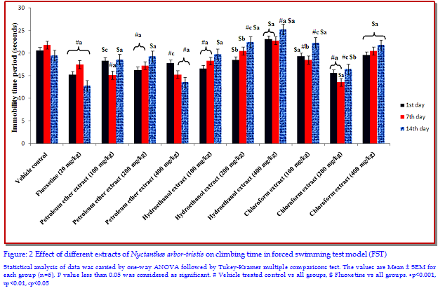 Antidepressant activity of Nyctanthes arbor-tristis in mice