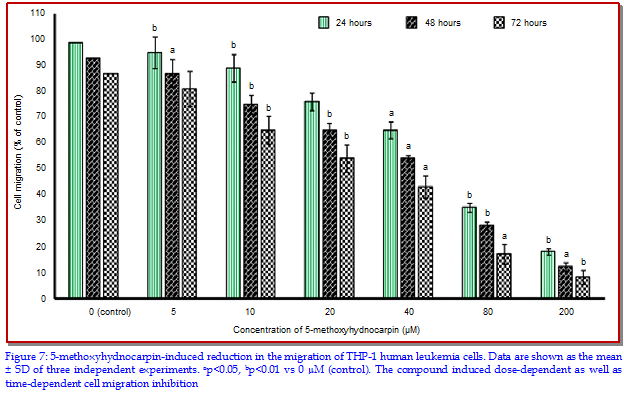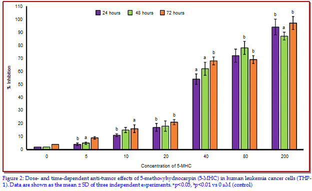 Anti-cancer, Apoptosis, Cell cycle arrest, Cell invasion, Cell migration, 5-Methoxyhydnocarpin, Mitochondria, THP-1 human leukemia cancer cellAbstract