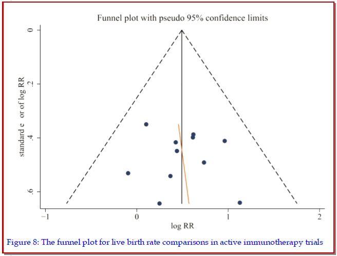 This study is to evaluate the curative effect of lymphocyte active immune treatment for unexplained recurrent spontaneous abortion. Fourteen randomized controlled trials of 994 subjects were included. Blocking antibody positive rate of patients who experienced a new pregnancy showed significant differences between immunotherapy and placebo. Moreover, live birth rate among paternal or third-party donor lymphocytes and placebo groups had significant difference [RR= 1.63, 95% CI (1.38-1.92), p<0.05]. Trial sequential analysis showed that the Z-curve crosses the trial sequential monitoring boundaries, confirming that the clinical benefit of active immunotherapy was significant. Subgroup analysis suggests that immunotherapy with lymphocytes might be more effective for primary recurrent spontaneous abortion than for secondary recurrent miscarriage. Taken together, women with primary recurrent spontaneous abortion who are negative for blocking antibody prior to treatment seemed most likely to obtain a potential beneficial effect of lymphocyte active immunotherapy, but not secondary recurrent spontaneous abortion.