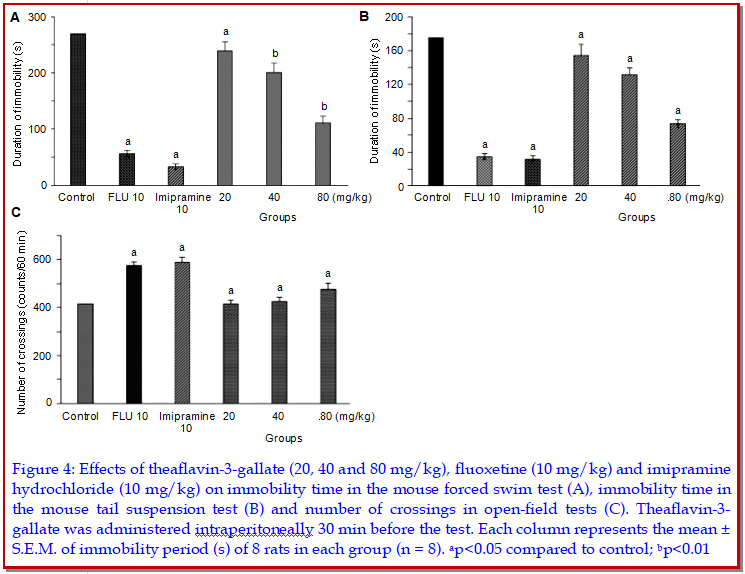 Antidepressant, neuropharmacological activity and mode of action of theaflavin-3-gallate in in vitro and in vivo models of depression