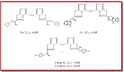 A series of bis[4-N-amino-5-mercapto-1,2,4-triazol-3-yl] alkanes (1a-e) and their Schiff bases with 2-adamanta-none (2a-d) and bis [1, 2, 4-triazolo [3, 4-b] - 1, 3, 4-thiadiazol-4-yl] alkanes (3a-e) have been synthesized with high yields. The cytotoxicity study of these newly synthesized compounds against brine shrimp lethality test as well as Structure-Activity-Relationship (SAR) has been discussed.