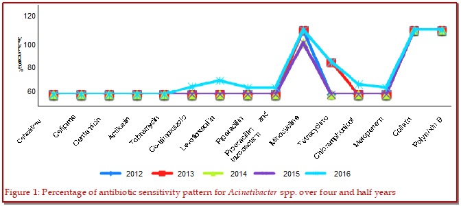 The aim of this study was to identify the antimicrobial susceptibility pattern and relevant treatment options in a neonatal intensive care unit from January 2012 and June 2016. Out of the total 78 culture positive samples, Gram positive and Gram negative microorganisms were 26% and 74% respectively. Acinetobacter remained the predominant isolate (32.1%) followed by Klebsiella species (18.0%). Most of the Gram positive isolates exhibited higher resistance to penicillin, cephalosporin, macrolides, gentamycin and quinolones. Gram positive isolates had sensitivity of 100% to linezolid, vancomycin, chloramphenicol followed by rifampicin (84%). In comparison to other commonly used antibiotics, sensitivity to these four medicines was statistically significant (p<0.05). Similarly, most of the Gram negative bacteria showed resistance to cephalosporin, aminoglycosides. About two-third cases showed resistant to meropenum, quinolones and combination preparation of piperacillin and tazobactam. Overall sensitivity among the Gram negative isolates was to polymixin B (100%) and minocycline (97%), followed by colistin (83%). In comparison to other commonly used antibiotics, sensitivity to these three medicines was statistically significant (p<0.05).