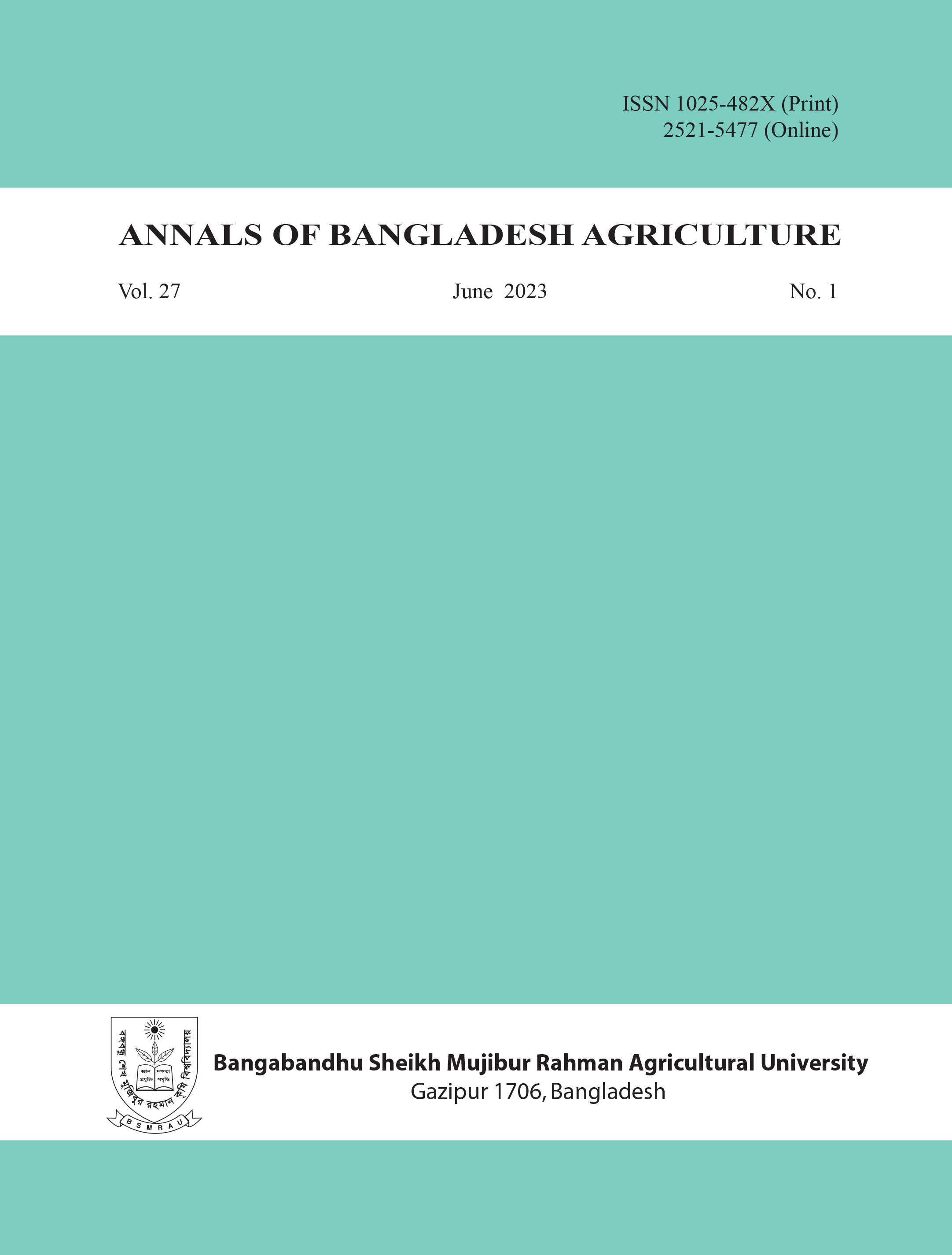 Articles in the Annals of Bangladesh Agriculture are licensed under a Creative Commons Attribution-NonCommercial 4.0 International License (CC BY-NC 4.0). This license permits Share— copy and redistribute the material in any medium or format, adapt — remix, transform, and build upon the material as long as it is not for commercial purposes.