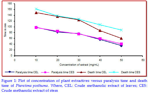 Evaluation of in vitro anthelmintic activities of leaf and stem extracts of Justicia gendarussa