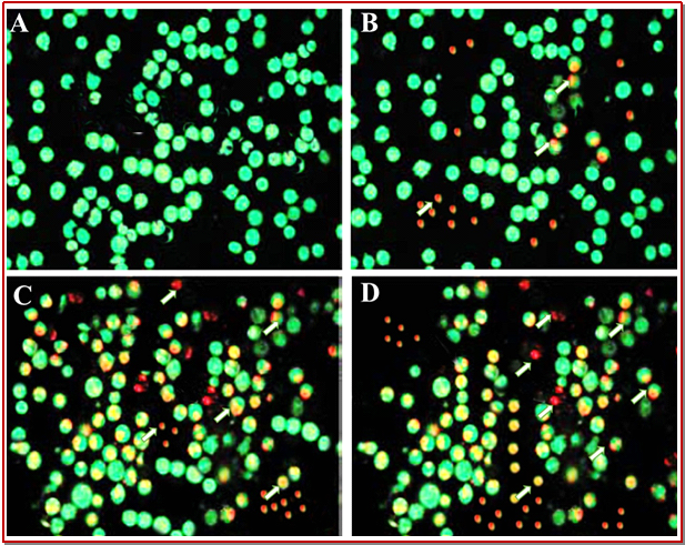 - Figure 3: Fluorescence microscopic study of HL-60 cells using acridine orange/propidium iodide staining method
