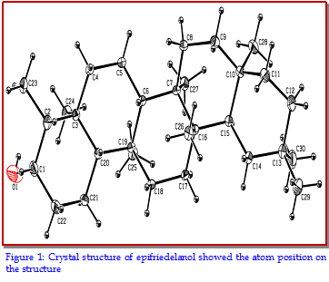 Cayratia trifolia is used as diuretic, in tumors, neuralgia and splenopathy. However, compounds depicting anti-ovarian cancer activities from this plant source have not yet been identified and structurally characterized till date. In the present study, X-ray structure of epifriedelanol, a bioactive compound, isolated from the ethanolic extract of the C. trifolia and its binding affinities against a few proteins (HER2, EGFR and CXCR4) that are reported to get overexpressed under ovarian cancer had been thoroughly studied by using molecular docking means. Binding affinities of the compound vis-à-vis that of carboplatin, a FDA approved drug to the ovarian cancer, to interact with the protein targets are quite impressive. The drug-likeness properties of the epifriedelanol and scope to develop the compound as a potent anti-ovarian cancer drug are discussed in this paper.