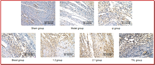 The aim of this study was the effects of supplementing qi and herbs that promote neovascularization on angiogenesis and expressions of vascular endothelial growth factor and endostatin protein in experimentally induced acute myocardial infarction in rats. Left anterior descending coronary artery was ligated to establish the acute myocardial infarction model. Microvascular vascular count and expressions of vascular endothelial growth factor and endostatin protein were detected and indexes were detected at 7th, 14th and 28th day. The results showed large doses of qi herbs combined with small doses of activating herbs are superior to other groups in promoting the angiogenesis, increasing vascular endothelial growth factor protein expressions and reducing endostatin protein expressions. It also showed that there was a dose-response effect of supplementing qi and activating blood circulation herbs promoting angiogenesis. The mechanism of supplementing qi and activating blood circulation herbs and combination of both promoted angiogenesis due to possibly to increased vascular endothelial growth factor protein expressions and reduced endostatin protein expressions.