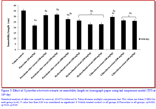 Antidepressant activity of Nyctanthes arbor-tristis in mice