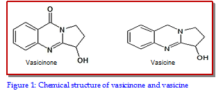 There is a need to investigate the new sources of antimalarial drugs which are more effective against Plasmodium falciparum. The present study was undertaken to evaluate the in vitro antiplasmodial activity of vasicinone, vasicine and 9-oxo-1, 2, 3, 9-tetrahydropyrrolo [2,1-b]quinazolin-3-yl acetate (VA-1). Vasicinone and vasicine were extracted from the leaves of Justicia adhatoda. The novel compound VA-1 was synthesized from alkaloid the alkaloid vasicine, which was isolated from the ethanol extract of J. adhatoda leaves. Vasicine (IC50 = 89.8 µg/mL) and vasicinone (IC50 = 38.9 µg/mL) showed moderate antiplasmodial activity whereas the compound VA-1 ( IC50 = 06.0 µg/mL) showed excellent antiplasmodial activity when compared with standard drug chloroquine (IC50 = 12.6 µg/mL). The results achieved suggest that both isolated and semi-synthetic compounds may serve as a lead compound to antiplasmodial activity. Further, the compound VA-1 is for the first time reported for antiplasmodial activity with IC50 value.