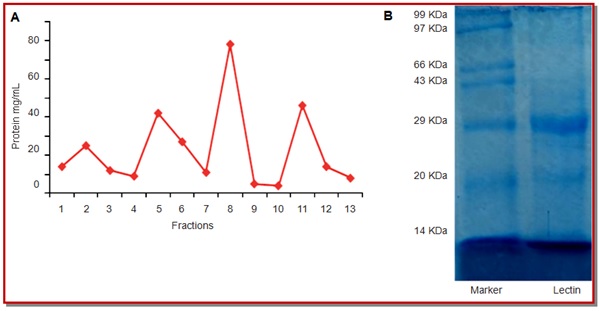 The present study evaluates the antiviral activity of banana lectin (BanLec) against herpes simplex virus type 1 and 2 (HSV-1 and HSV-2). Lectin was isolated from the ripen pulp of bananas (Musa paradisiaca). The study showed that lectin exhibited hemagglutination activity towards human erythrocytes A, B, AB and O group. The molecular weight of BanLec using SDS gel-electrophoresis was found to be 14,000-30,000 Da. Cytotoxicity of BanLec on the Vero cell lines showed an inhibitory concentration of 172.7 µg/mL. BanLec was virucidal and showed no cytotoxicity at the concentration tested. The lectin showed a dose-dependent antiviral activities, inhibiting HSV-1 by 16.0 µg/mL with selectivity index 10.8 and HSV-2 inhibition by 67.7 µg/mL with selectivity index 2.6. These results corroborate that BanLec could be a rich source of potential antiviral compound for HSV-1 when compared to HSV-2.
