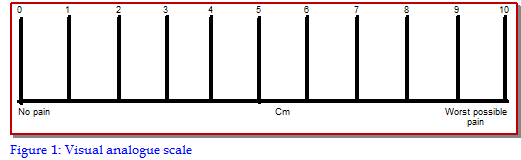 Cork RC, Isaac I, Elsharydah A, Saleemi S, Zavisca F, Alexander L. A comparison of the verbal rating scale and the visual analog scale for pain assessment. Internet J Anesthesiol. 2004; 8: 50-52.