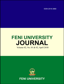 Articles in the Feni University Journal (FUJ) are licensed under a Creative Commons CC BY-NC-ND License Attribution-Non Commercial-No Derivatives 4.0 International (CC-BY-NC-ND 4.0). This license permits Share —copy and redistribute the material in any medium or format.